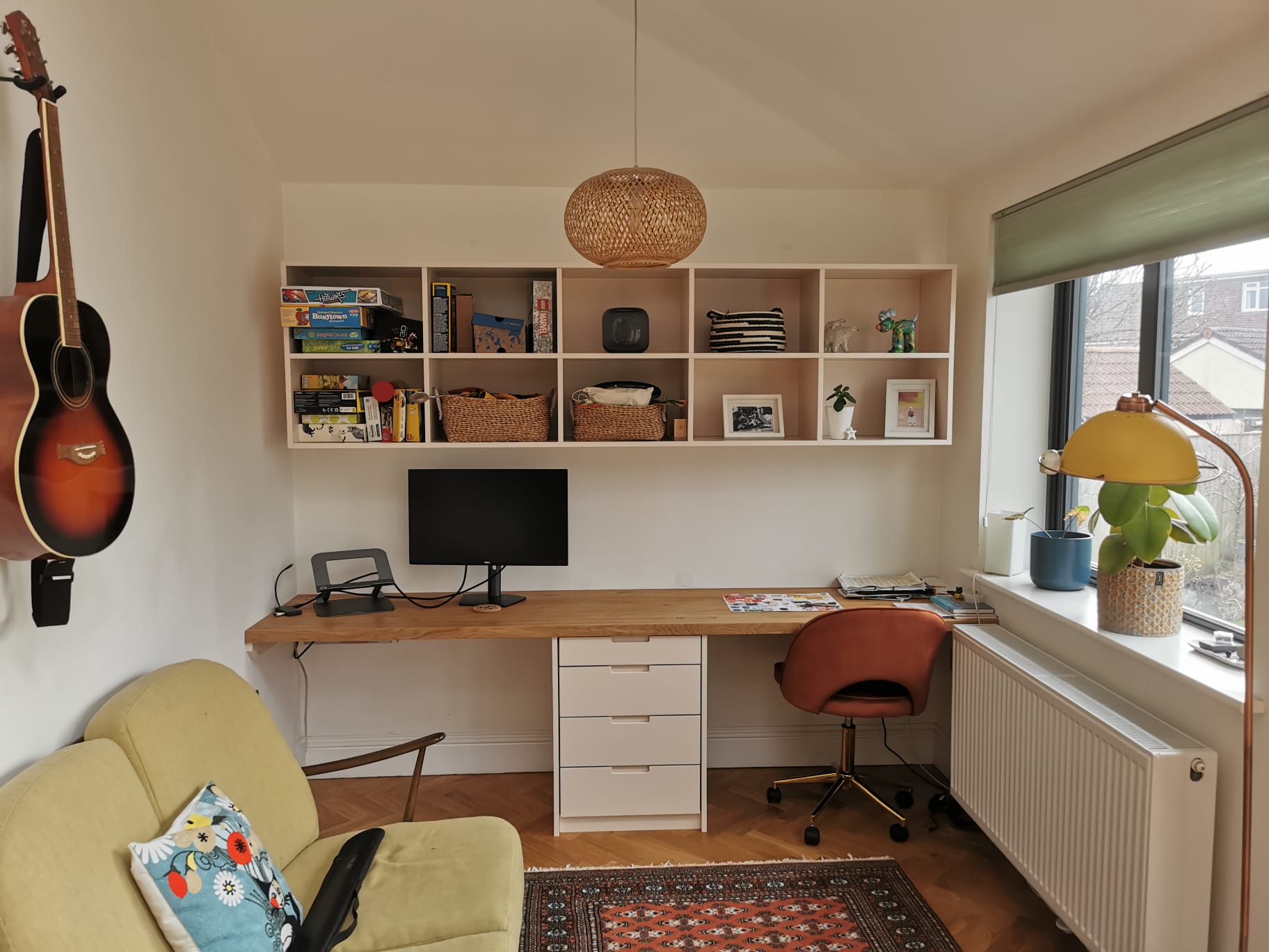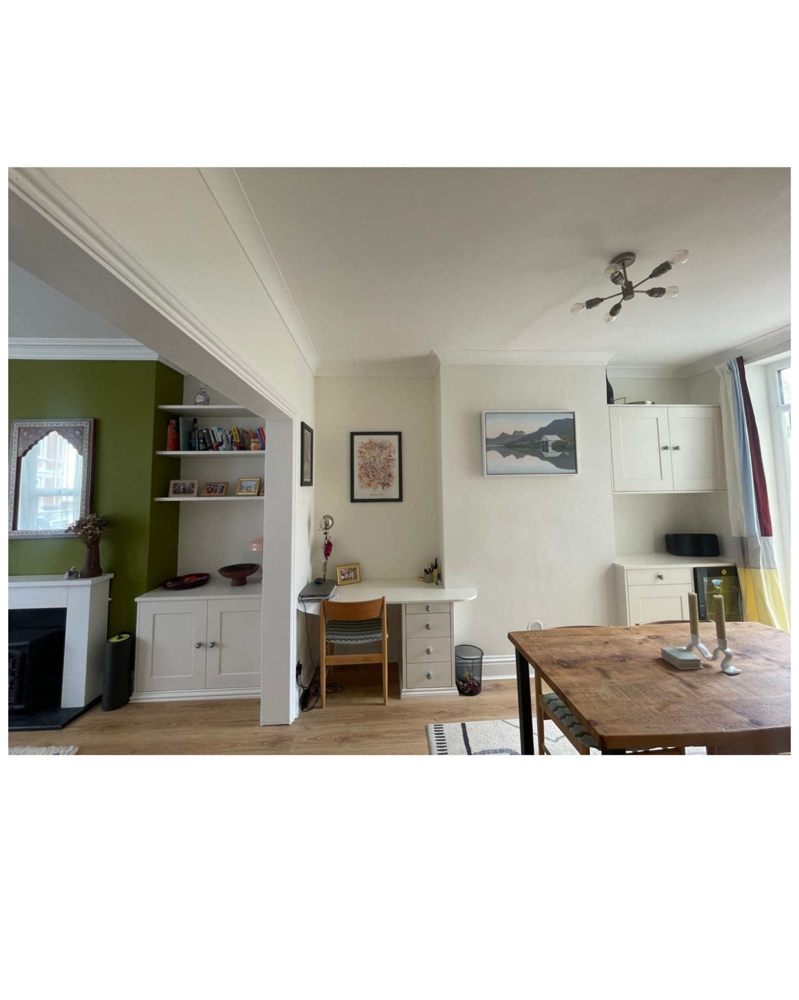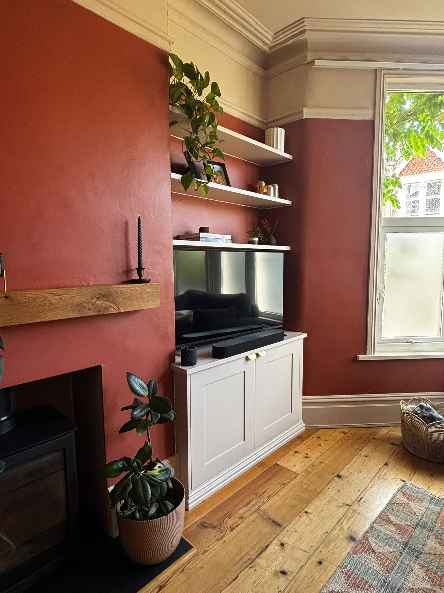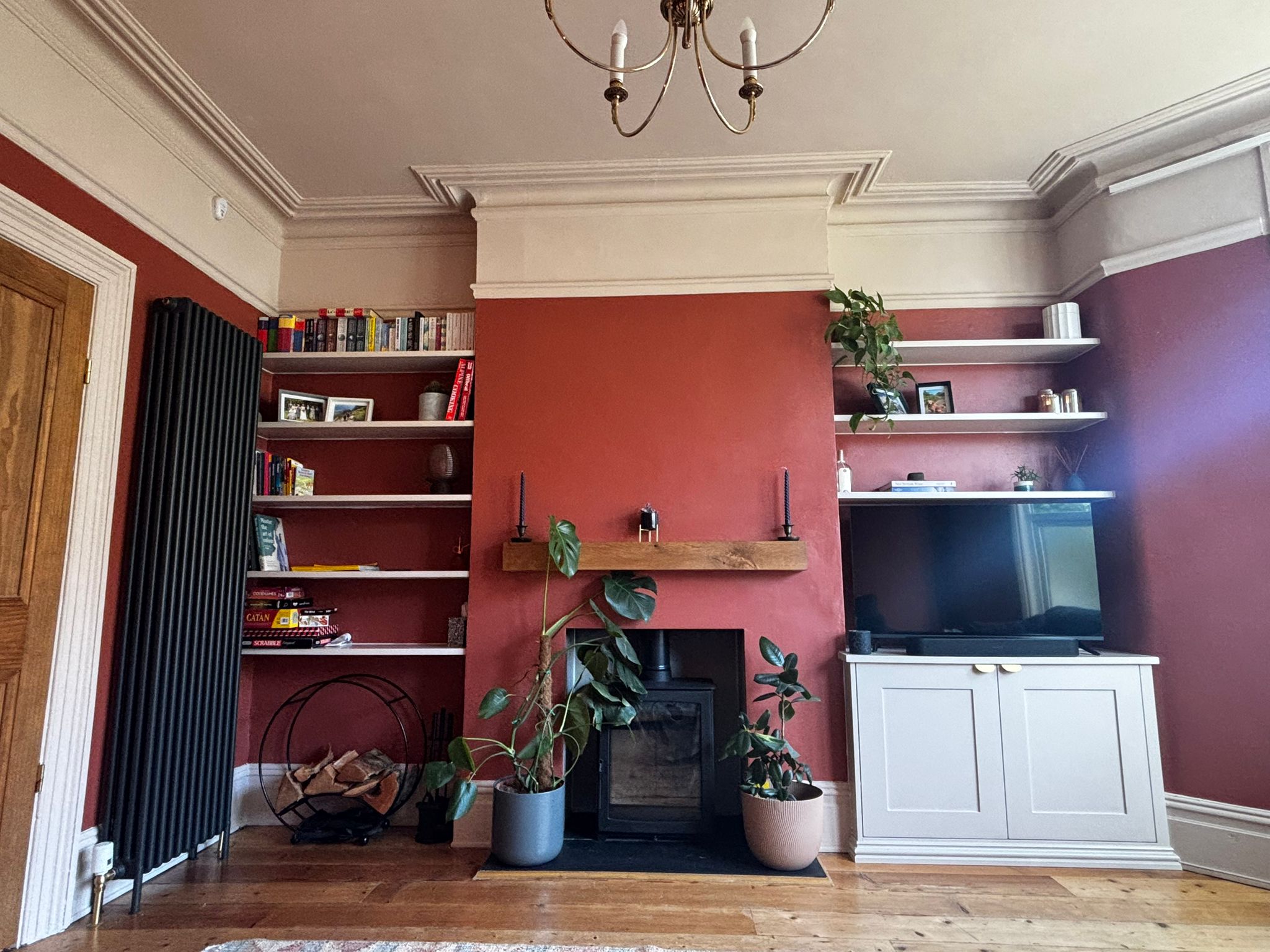 Fitted furniture perfectly utilises the space on either side of the chimney breast. These alcove cupboards and shelves provide practical storage, hide away wires, and are beautiful ways to display all kinds of items.